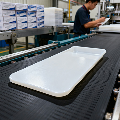W materiałach zastosowano PP dopuszczony do kontaktu z żywnością (np. PP R370Y) lub HDPE (np. HDPE 5000S), certyfikowany przez FDA i GB 4806.7-2016, z migracją ≤5 mg/kg;