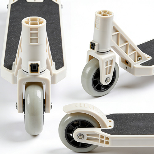 Wysoka precyzja to kolejna ważna cecha formowania części z tworzyw sztucznych do skuterów. Części do hulajnogów mają rygorystyczne wymagania dotyczące dokładności wymiarowej, szczególnie w przypadku pasujących części. Niewielkie odchylenie wymiarowe może prowadzić do trudności w montażu lub wpływać na ogólne działanie hulajnogi. Precyzja produkcji form firmy P&M może sięgać 0,005 mm, a w procesie produkcji wtryskowej stosujemy bardzo precyzyjne systemy kontroli, aby zapewnić, że odchylenie wymiarowe każdej części z tworzywa sztucznego mieści się w dopuszczalnym zakresie. Ta wysoce precyzyjna zaleta formowania części z tworzyw sztucznych do skuterów umożliwia naszym produktom doskonałą wymienność, co zmniejsza problemy klientów podczas montażu. Ponadto formowanie części z tworzyw sztucznych do skuterów ma również dużą elastyczność. Może wytwarzać części z tworzyw sztucznych o różnych kształtach, rozmiarach i złożoności, niezależnie od tego, czy jest to zakrzywiona skorupa hulajnogi, porowate części konstrukcyjne czy małe precyzyjne koła zębate. Nasz zespół projektantów form może dostosowywać formy do unikalnych potrzeb klientów i realizować produkcję spersonalizowanych części plastikowych do skuterów poprzez formowanie części z tworzyw sztucznych do skuterów. Dzięki tej elastyczności firma P&M jest w stanie sprostać różnorodnym potrzebom różnych marek i modeli hulajnóg.